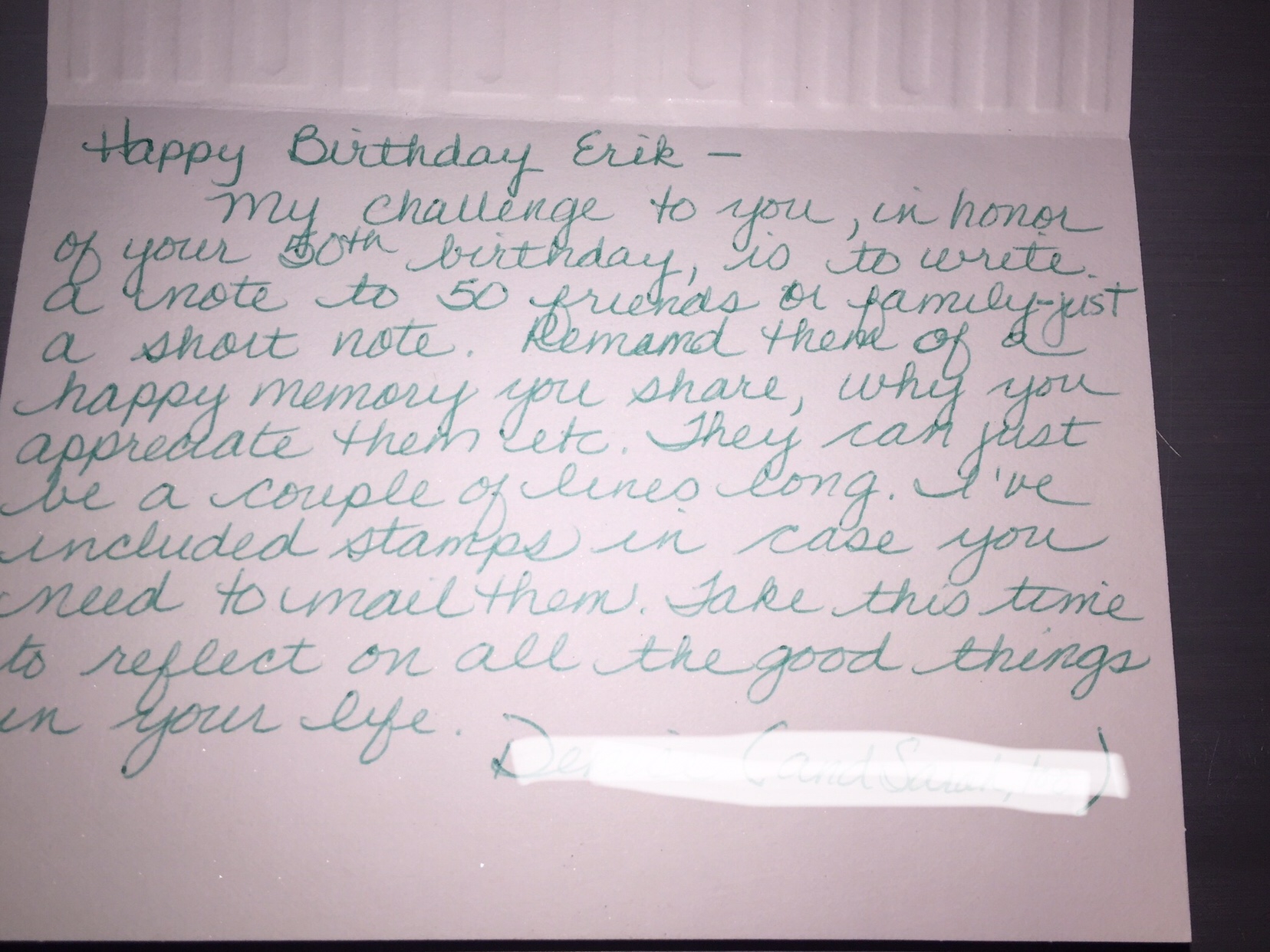 Shortly before I turned 50 I gave cards to many of my friends and family with a simple idea:  Give me something interesting to do!  The instructions along with the card asked that they write down a reasonably inexpensive idea or two for me to do that I could accomplish within one week.  Then, once a week, every week for my 50th year I would choose a random card, do the activity described within, and report back to them about my experience.